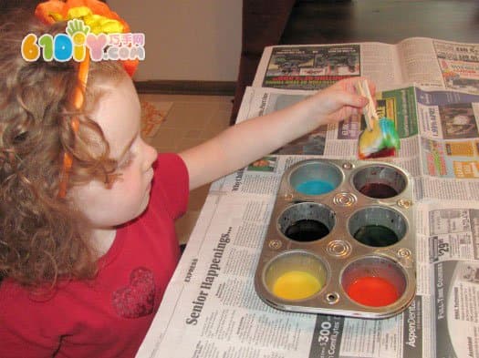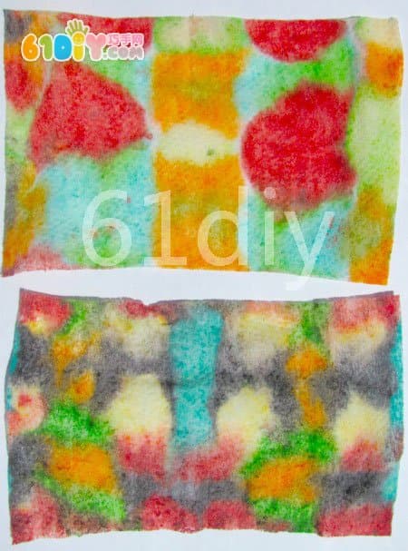 把一些湿巾折好,蘸上不同的颜色,看看会是什么样的效果?
