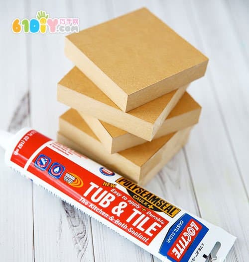手工材料:填缝胶、颜料、卡纸、小木块