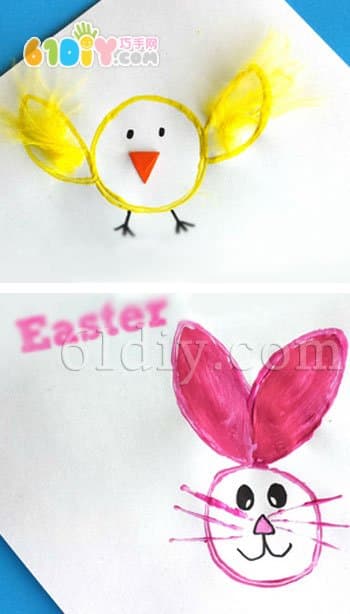 幼儿园手工:用卷纸芯画小鸡小兔子