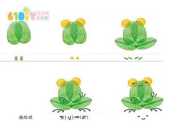 美丽的池塘指印画 荷花 青蛙 蝌蚪 小鱼