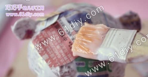 8、把小块的报纸一点点糊在表面 用小刷子刷上乳胶。