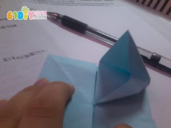 13.将立起来的三角形压成。。。我也不知道是什么形状。。