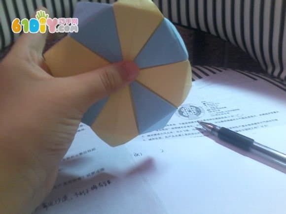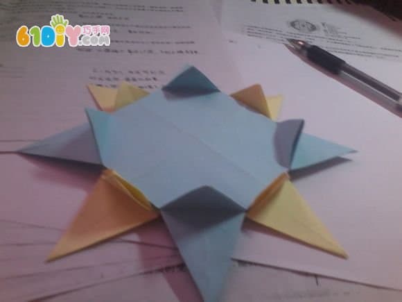 12.将多出来的八个三角形折到后面去(也可以用固体胶固定)正反效果图如下